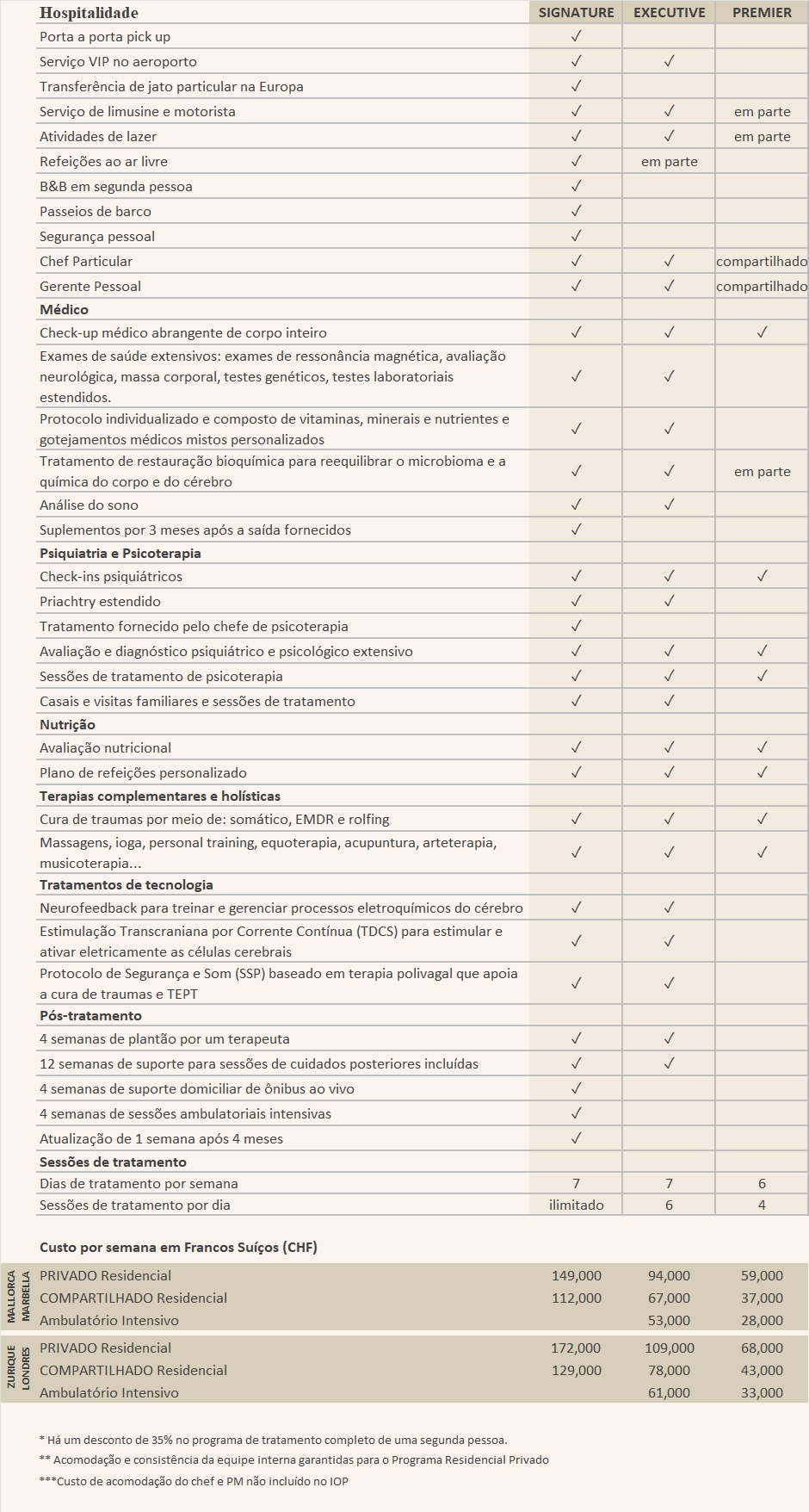 Somos especializados em fornecer cuidados especializados para indivíduos ricos que buscam a recuperação de problemas de saúde mental e dependência. Entendemos os estressores e desafios únicos que acompanham seu estilo de vida, e nossa principal prioridade é seu bem-estar e privacidade. Tomamos muito cuidado ao criar um ambiente seguro e acolhedor para sua jornada de cura, selecionando residências que variam de vilas particulares a superiates, tudo situado em meio à beleza calmante da natureza.